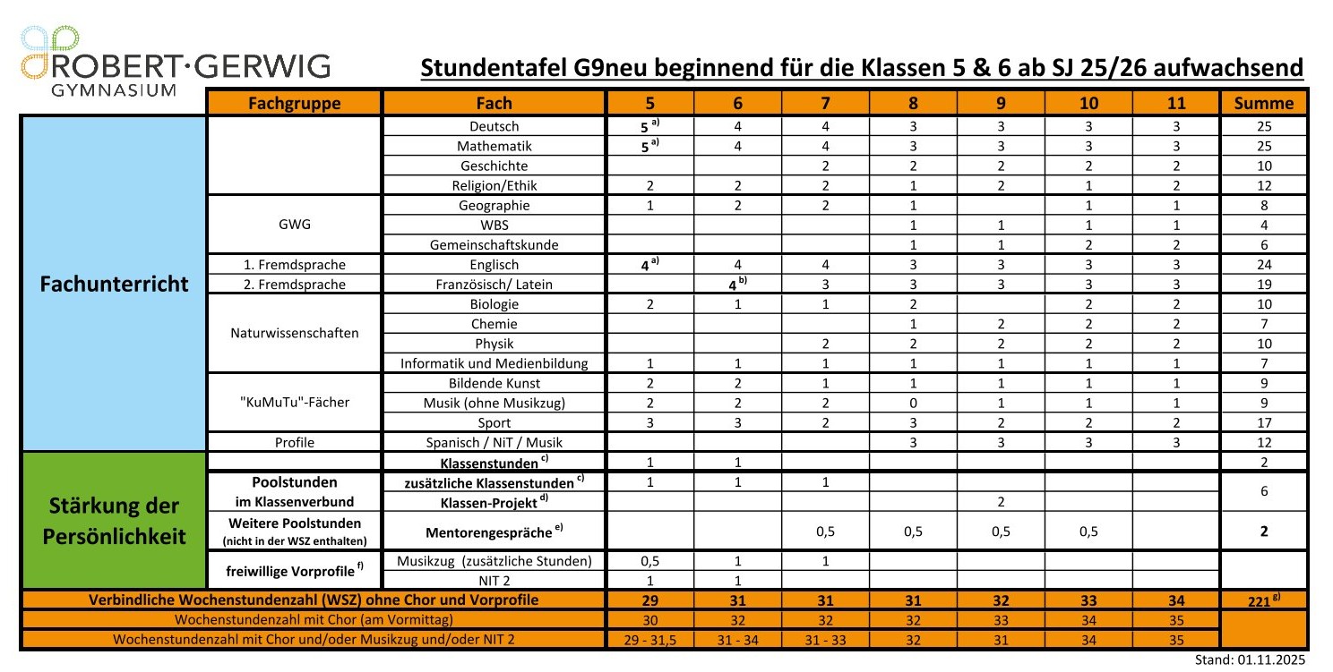 e) Insgesamt zwei Poolstunden für Mentorengespräche, dadurch durchgängig von Klasse 7 bis 10 (ab Klasse 11 Oberstufenberatung)